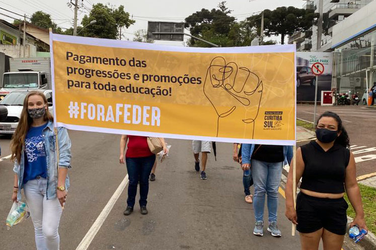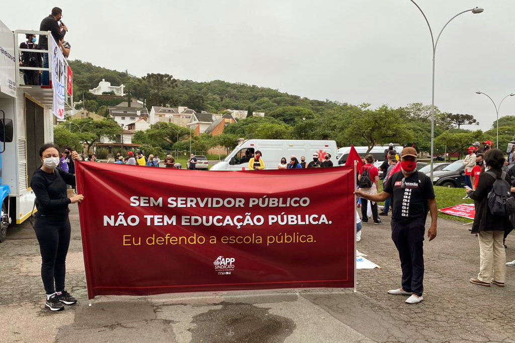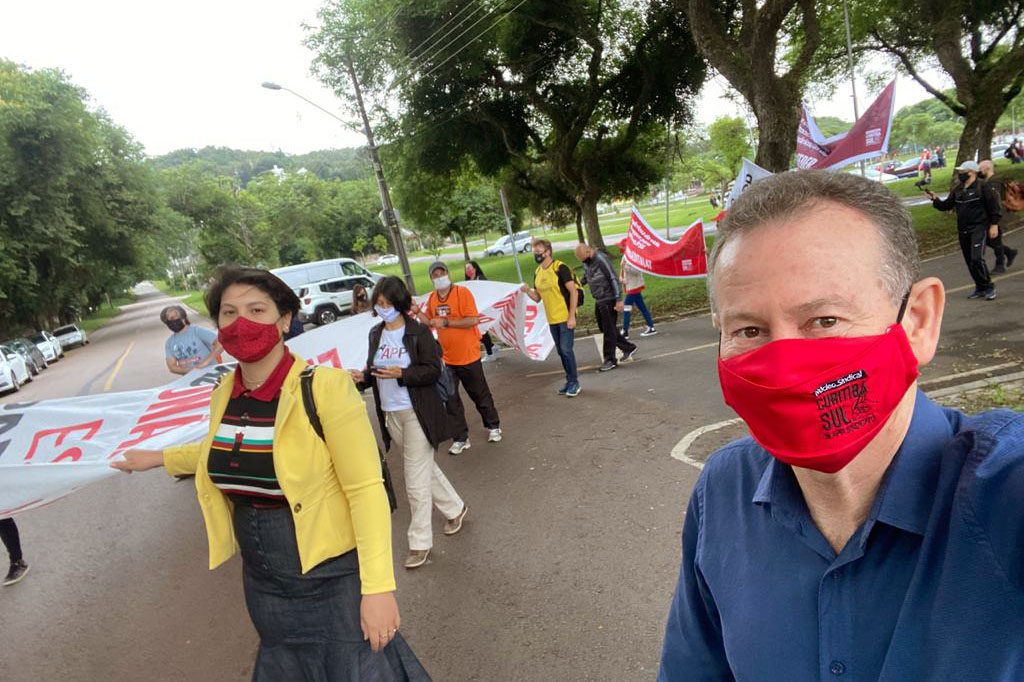 “Por que só os professores e funcionários de escola ficarão com a carreira congelada por dois anos, em 2020 e 2021? É preciso justiça com os servidores da educação. Não se pode manter os professores com a carreira e salários congelados. E também não se pode pagar menos que o salário mínimo regional aos funcionários de escola! Isto é injusto, é vergonhoso. É um desrespeito com os funcionários de escola e precisa ser corrigido. É inadmissível e estão cobertos de razão os nossos professores e funcionários que estão mobilizados no dia de hoje. Peço à população do Paraná que apoie os professores. É preciso demonstrar apoio aos professores e funcionários de escola neste momento. Eles precisam de socorro neste momento”.